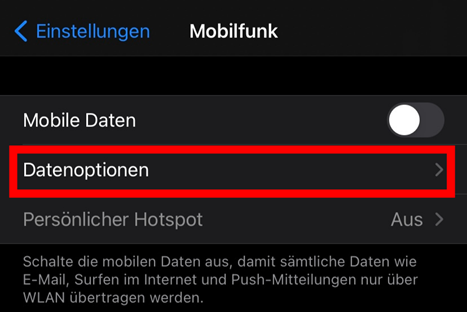 Das Problem kann möglicherweise auch so behoben werden: Mit der Änderung der Sprach- und Daten-Einstellungen kannst Du überprüfen, ob Du an Deinem Standort die Signale empfängst. Dafür musst Du auf:
